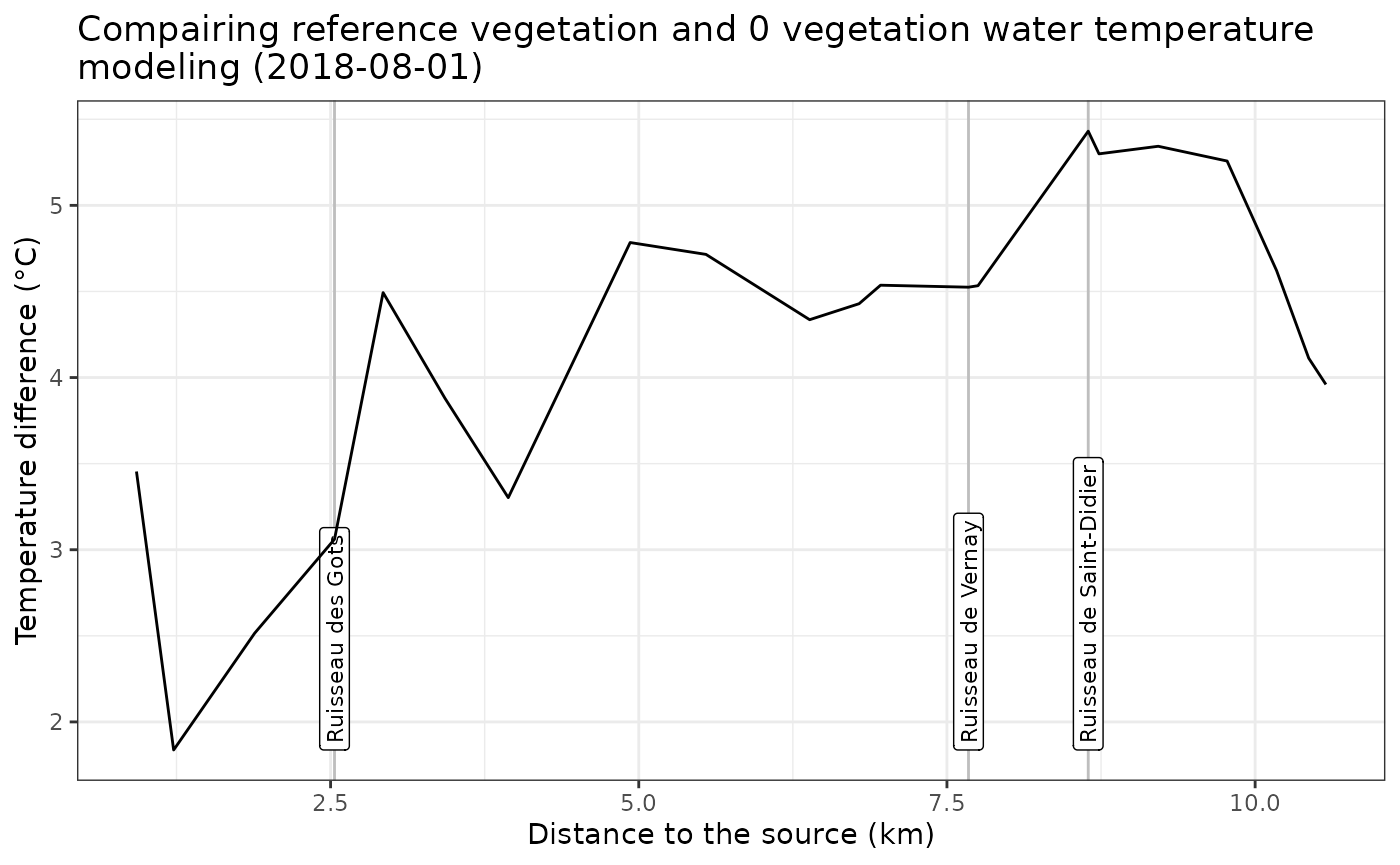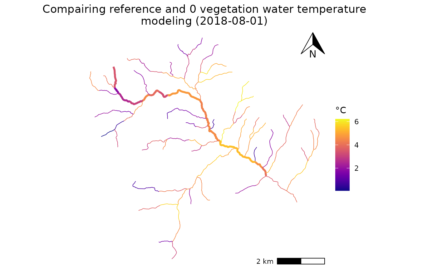title = paste0("Compairing reference vegetation and 0 vegetation water temperature\nmodeling (",day,")"))